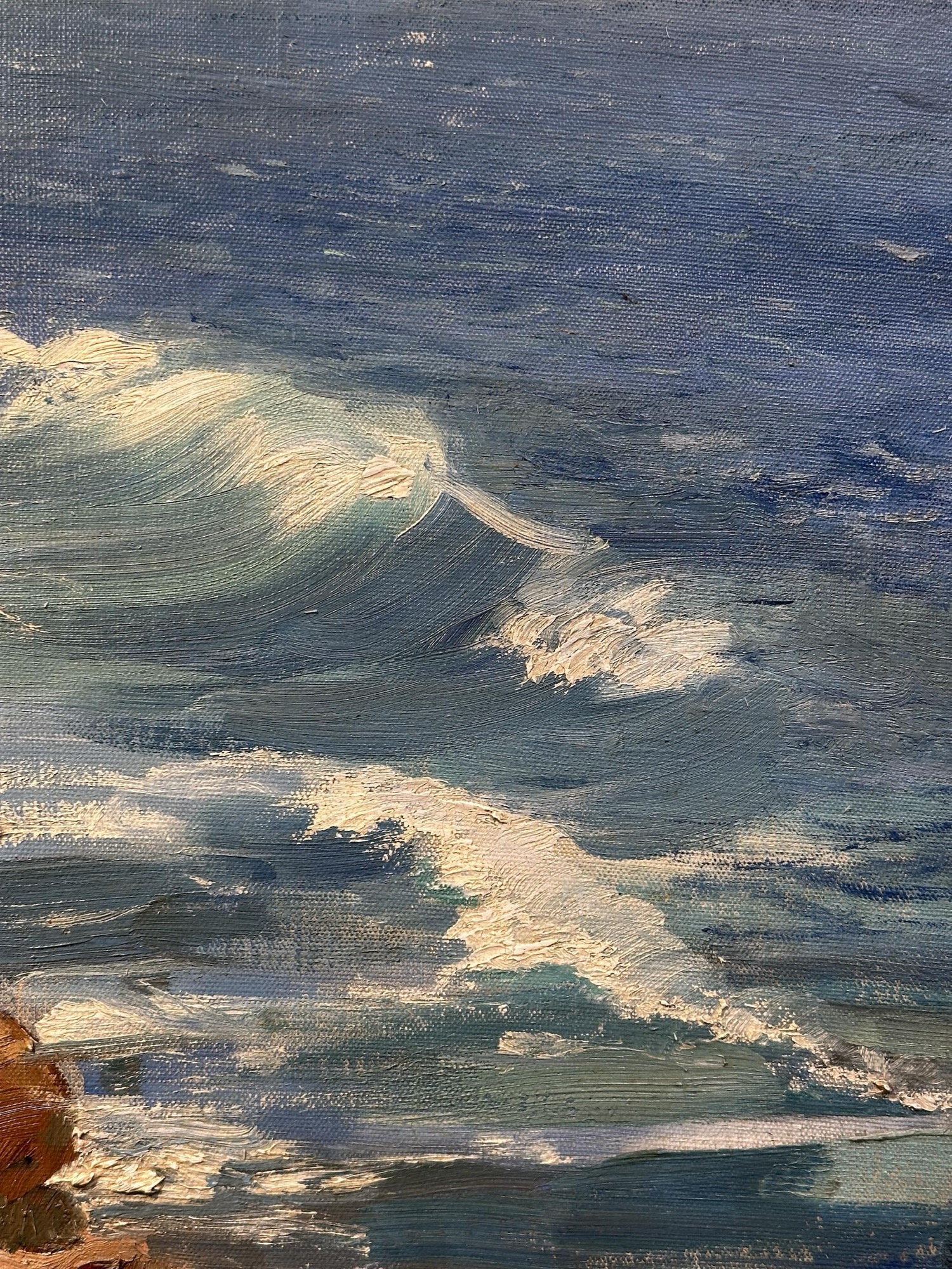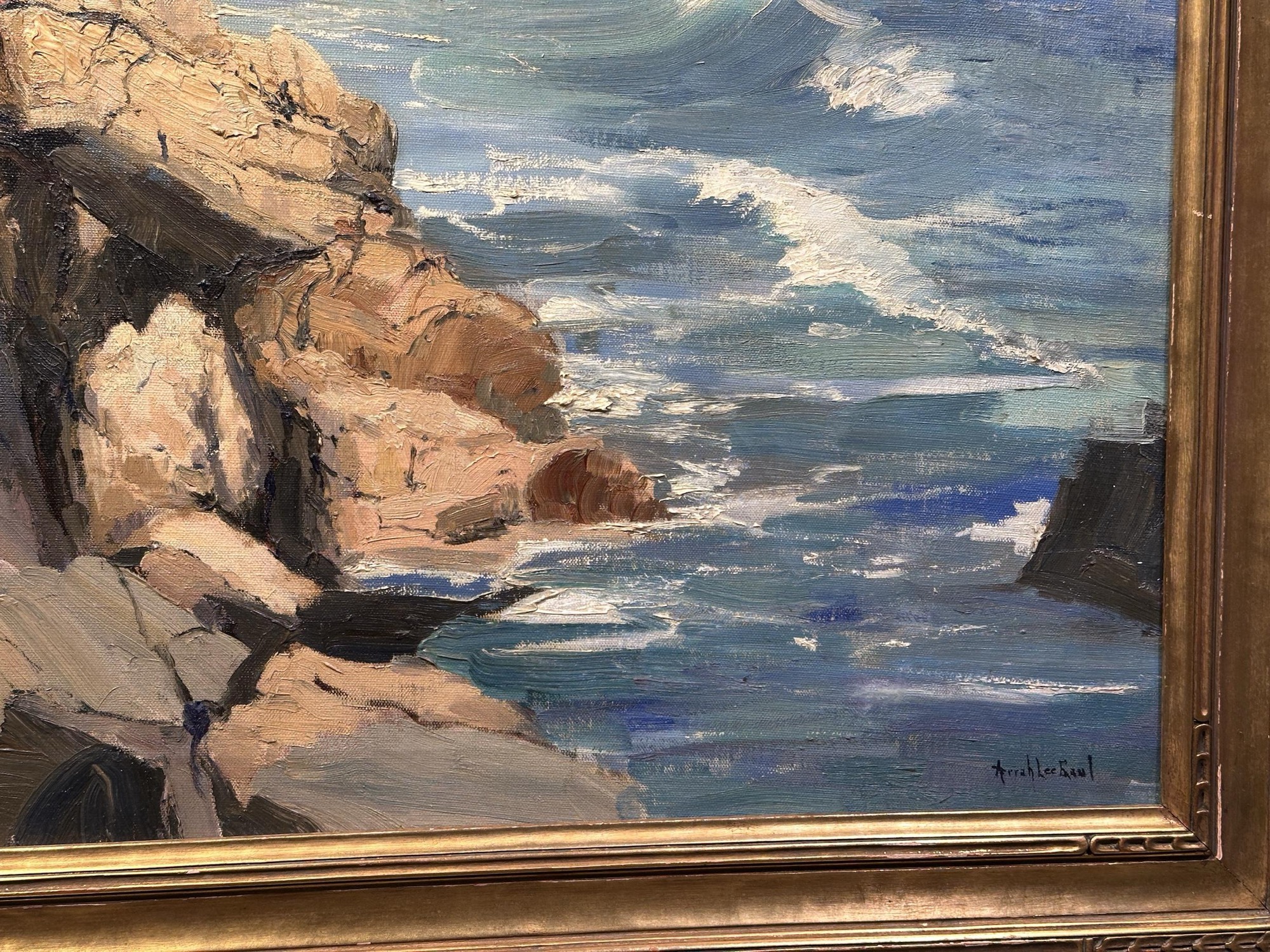 This is a fresh and spirited example of Gaul's coastal painting-at once modern in its brushwork and timeless in its evocation of sea air, light, and the enduring solidity of rock against tide