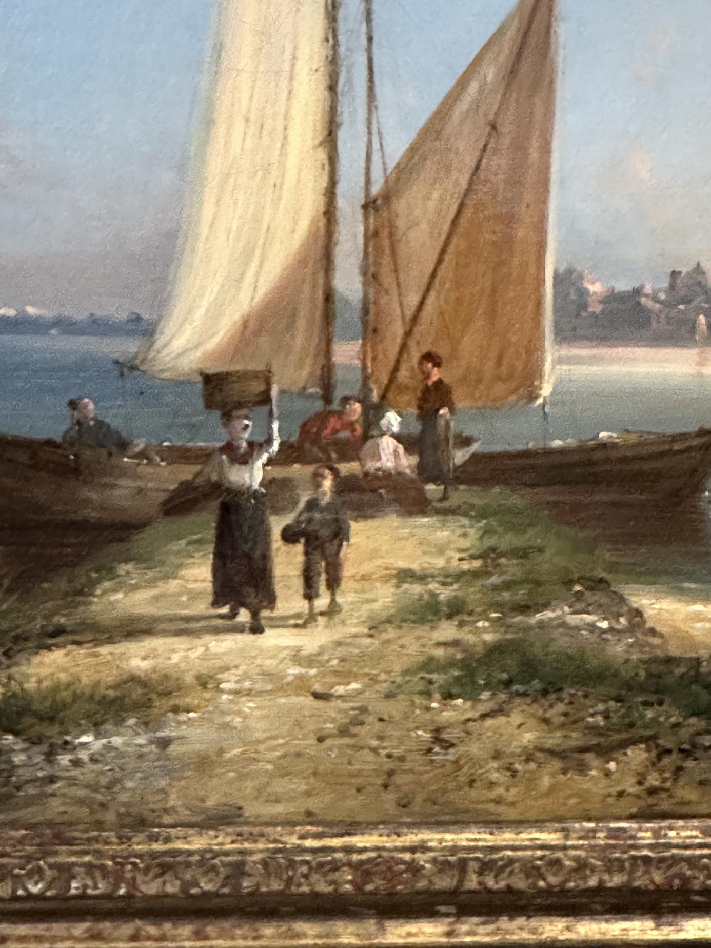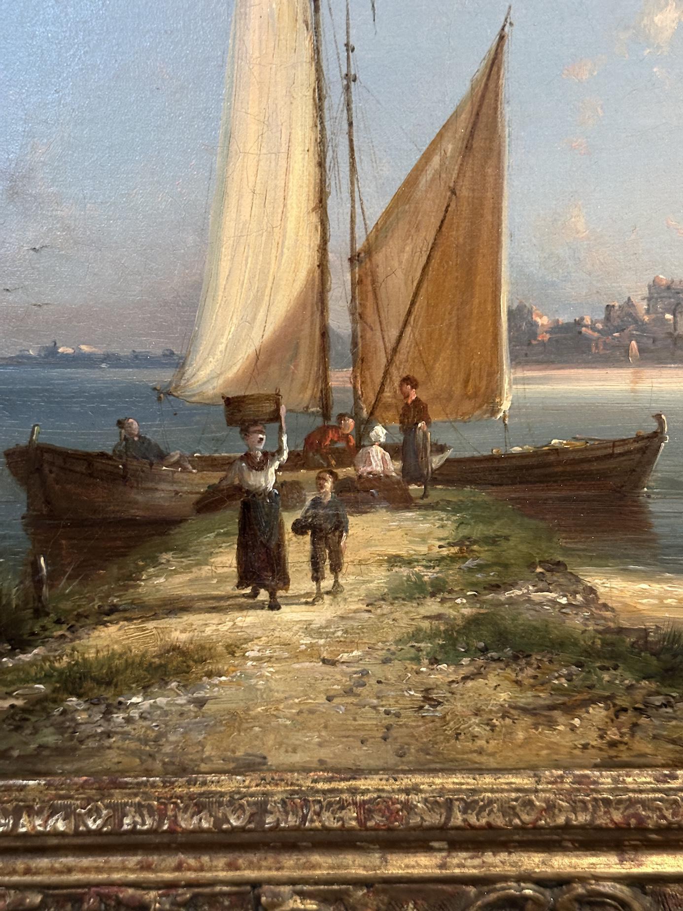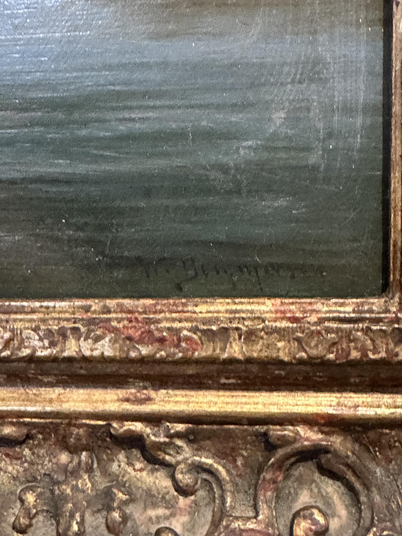 Presented in an impressive and highly decorative period-style frame, the painting would make a handsome addition to any collection of 19th-century European marine or landscape painting, and would sit beautifully in both traditional and country house interiors.